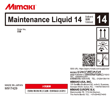 Our maintenance liquid for cleaning ink channels for the following models: JFX200-1213 EX, JFX200-2513 ,JFX200-2513 EX, JFX200-2531, JFX600-2513, JFX600-2531, SIJ-320UV,...